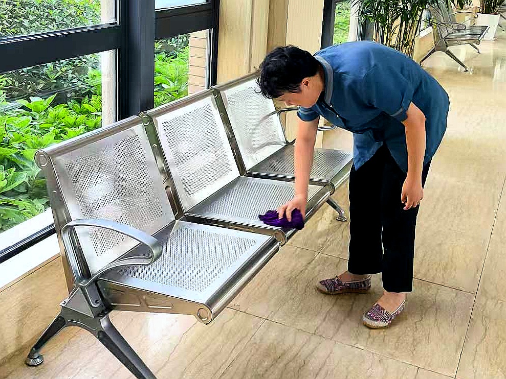 同时,针对各公共楼宇开展内部全方位保洁与维护,细致擦拭门窗、面板、扶手,实施专业消杀,并对行政楼大理石地面进行抛光保养,提升整体环境品质。楼宇服务员逐间查验教室设施,及时报修,保障教学环境安全可靠。