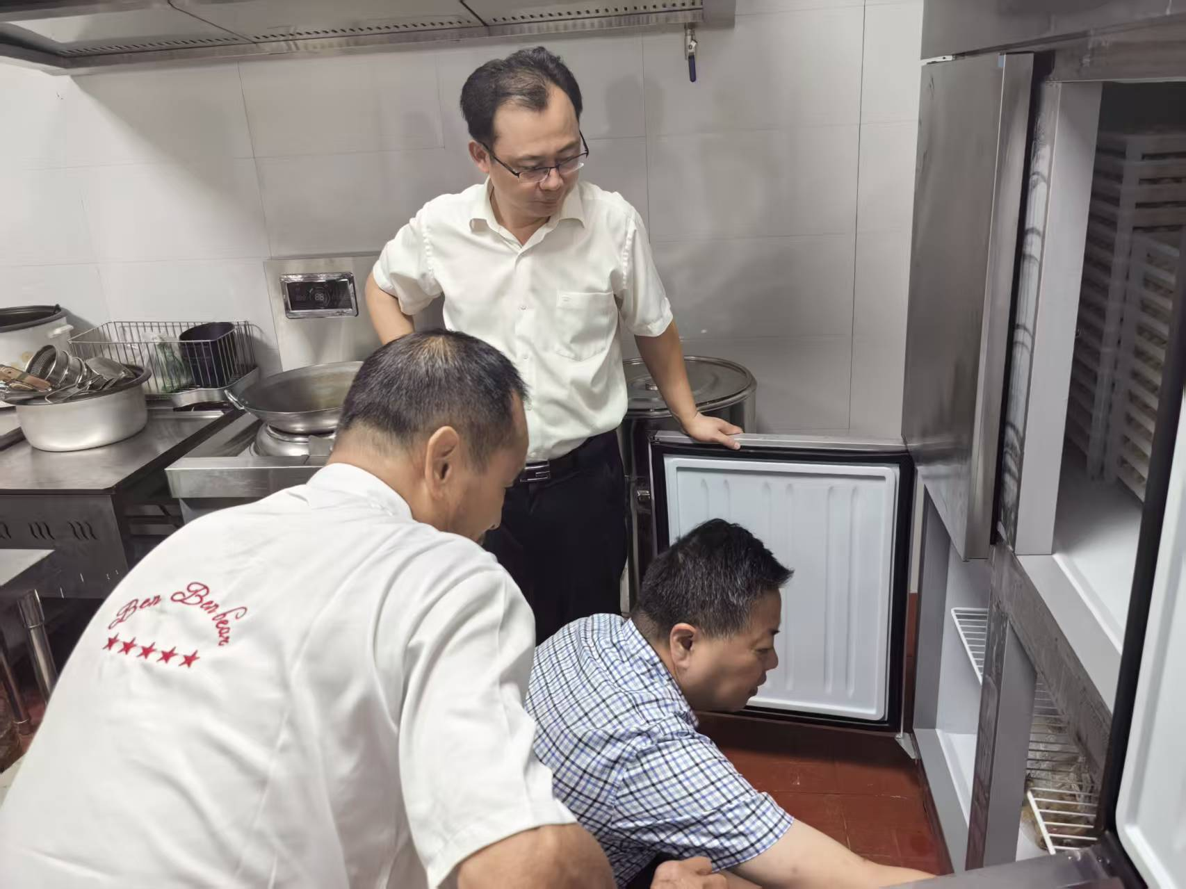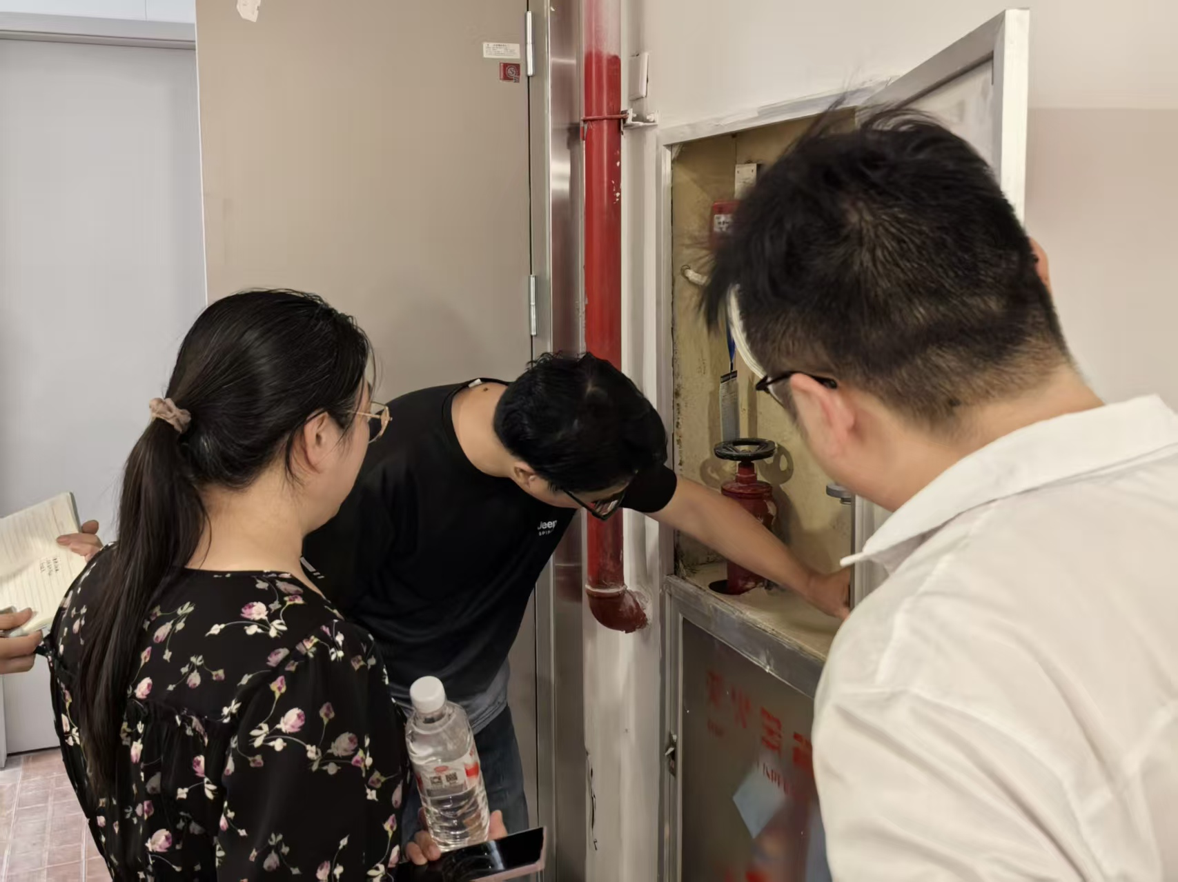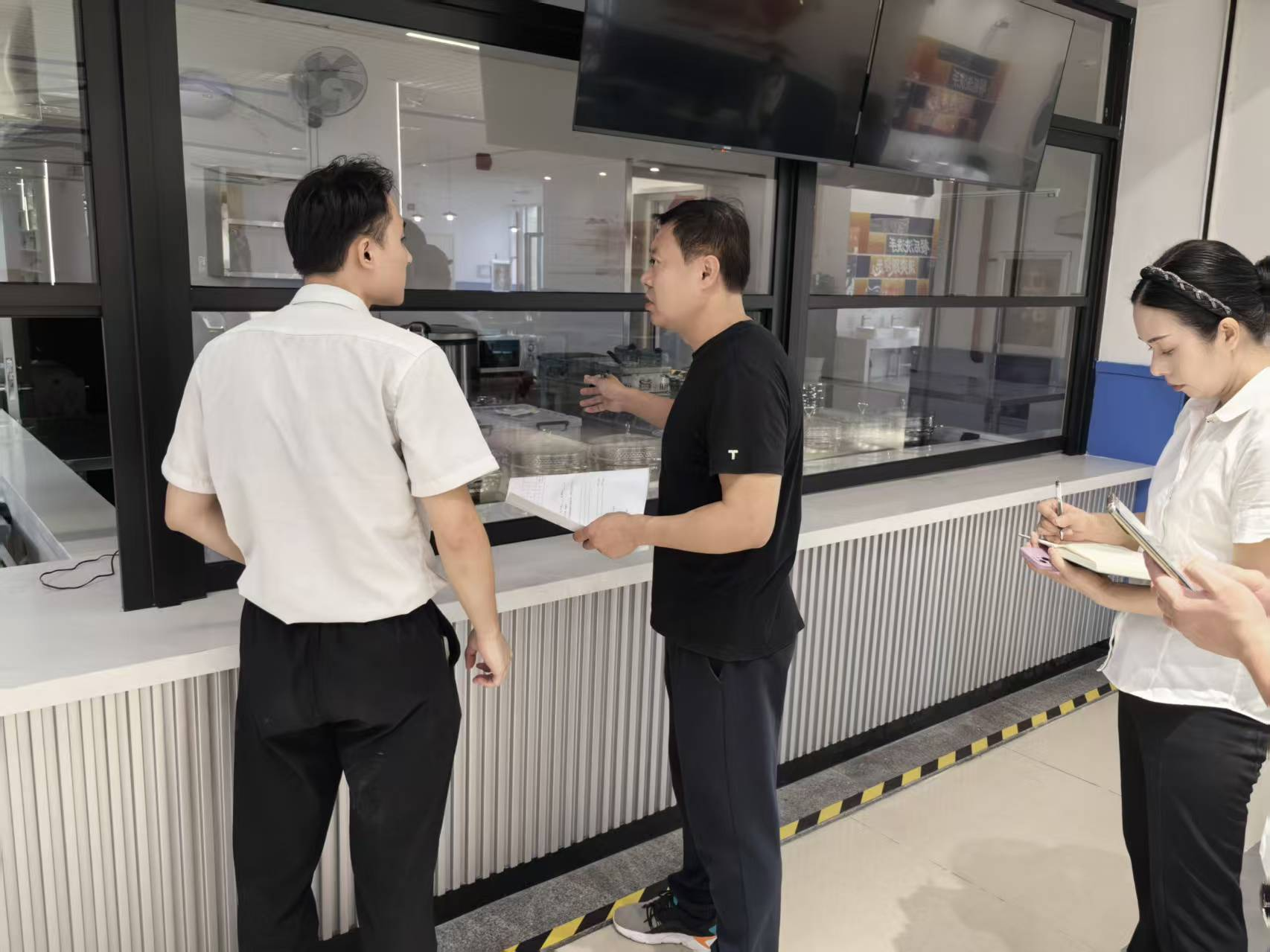 安全管理包含食品安全、消防安全、设施设备安全、公共设施安全及安全生产管理,验收小组重点检查了后厨地面、墙面等卫生、原材料储存、食品留样设备、洗手消毒设施、“三防”设施等食品安全管理情况,消防设施设备配备情况与楼梯墙面、门窗等是否存在破损等情况。